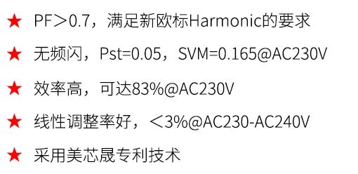 針對新歐標(biāo),美芯晟MT7618N和MT7619N兩種解決方案應(yīng)運(yùn)而生。其中,MT7618N是一款PF>0.7、無頻閃的線性解決方案,MT7619N是基于MT7618N內(nèi)置整流橋的解決方案。