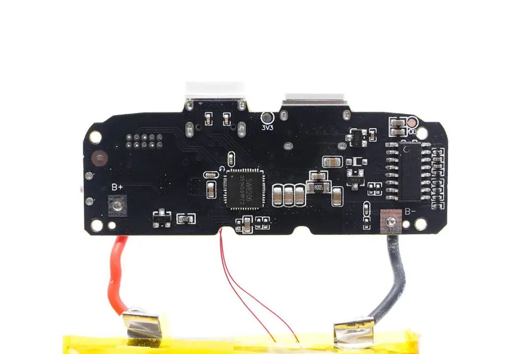 移動電源主控芯片采用智融SW6206。這是一款高集成度的多協(xié)議雙向快充移動電源專用多合一芯片,支持A+A+B+C+L口任意口快充。其集成了5A高效率開關充電,22.5W高效同步升壓輸出。