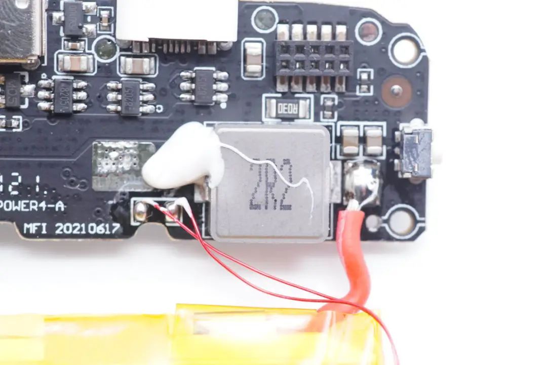 充電頭網通過拆解了解到,充電寶內置兩塊PCB小板,之間有泡棉支撐。無線充方案采用美芯晟MT5811,這是一款高度集成的無線充電發(fā)射芯片,符合Qi標準以及高達15/50W的輸出功率,還集成ARM M0 處理器,總的來說在體積、兼容性、性能、效率等方面的表現(xiàn)都很好,能夠滿足客戶的各種要求。