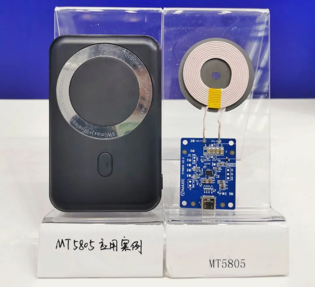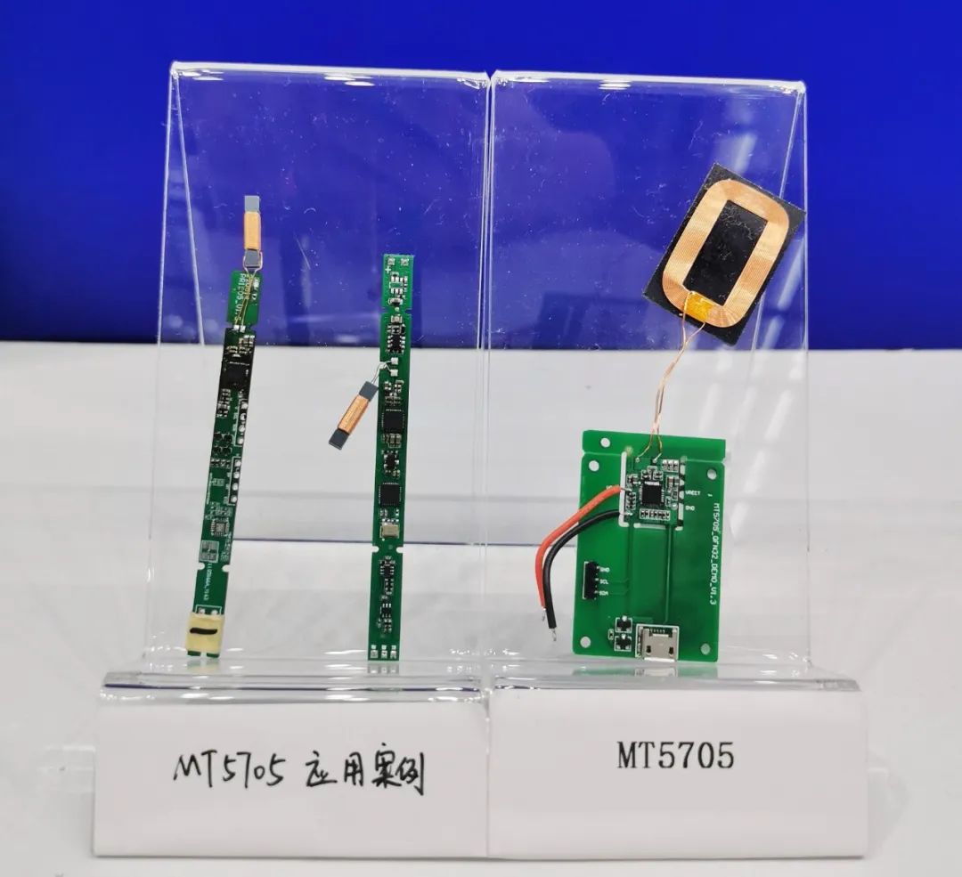 發(fā)射端芯片,為大家?guī)?lái)了全集成、超低功率、高精度的MT5805,并在現(xiàn)場(chǎng)準(zhǔn)備了內(nèi)置MT5805的磁吸充電寶(自啟動(dòng)應(yīng)用,速度更快,功耗更低),以便廣大客戶可以更加直觀地感受該芯片的實(shí)際應(yīng)用效果。