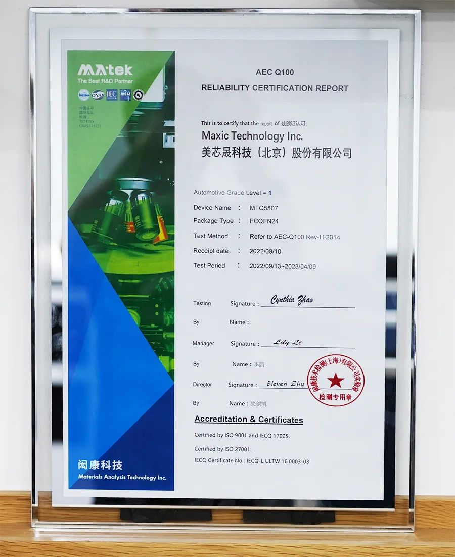 4月17日,美芯晟科技(北京)股份有限公司(以下簡稱“美芯晟”)與閎康技術(shù)檢測(上海)有限公司(以下簡稱“閎康科技”)成功在京舉辦了“AEC Q-100認(rèn)證報(bào)告”頒發(fā)儀式,美芯晟與閎康科技雙方多位重要代表共同出席了本次儀式。本次通過AEC Q-100標(biāo)準(zhǔn)認(rèn)證,是美芯晟向車規(guī)級芯片邁進(jìn)的重要一步,為加速布局汽車電子領(lǐng)域提供了強(qiáng)有力的基礎(chǔ)。